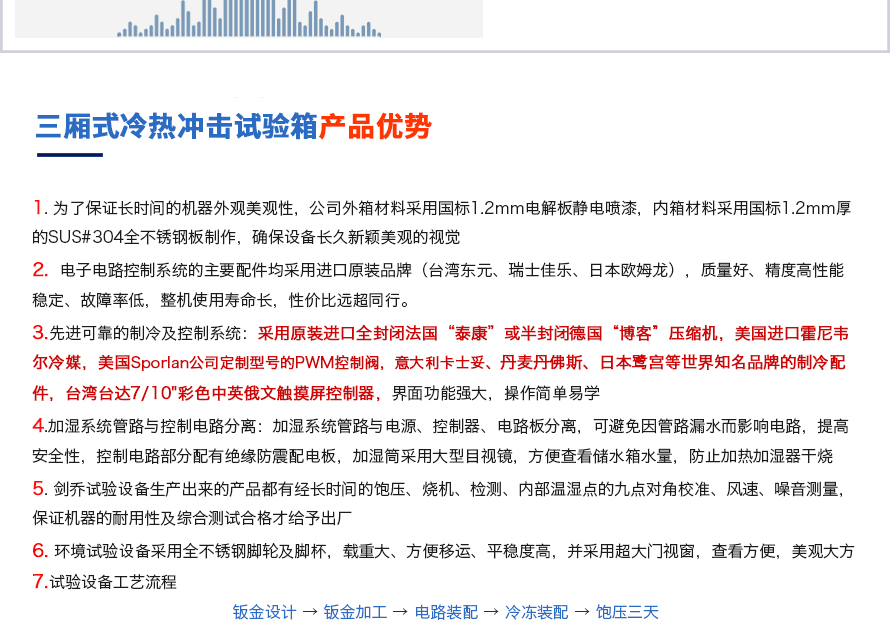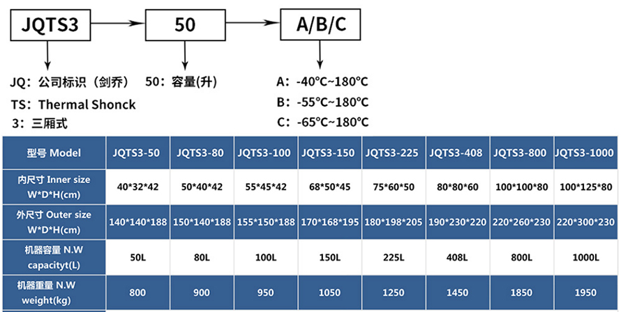 產(chǎn)品型號:JQTS3-408 品牌:劍 喬 用途:用途:三箱式冷熱沖擊試驗箱又名溫度沖擊試驗或高低溫沖擊試驗是用于考核產(chǎn)品對周圍環(huán)境溫度急劇變化的適應(yīng)性,裝備設(shè)計定型的鑒定試驗和批產(chǎn)階段的例行試驗中不可缺少的試驗